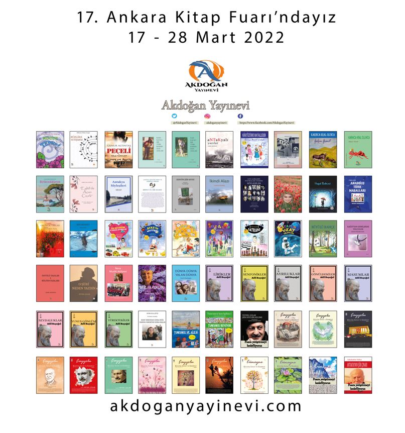 Akdoğan Yayınevi ve Cüneyne Kültür Sanat ve Edebiyat Dergisi olarak 17-28 Mart 2022 tarihleri arasında Congresium’da gerçekleştirilecek olan 17. Ankara Kitap Fuarı’nda yazarlarımızla, kitaplarımızla, dergilerimizle yer alacağız.
